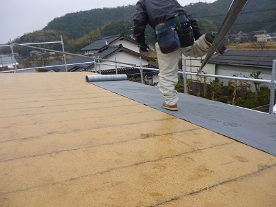 上棟式は、お昼から雨が降り出してしまいましたが、たくさん降る前に、屋根にシートを張ることができました。