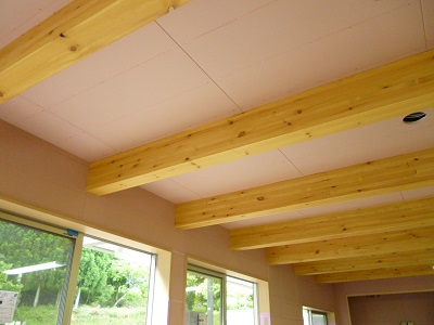 これはY様邸のリビングの梁の部分です。運動会が出来そうな広さのリビングなので圧巻です。