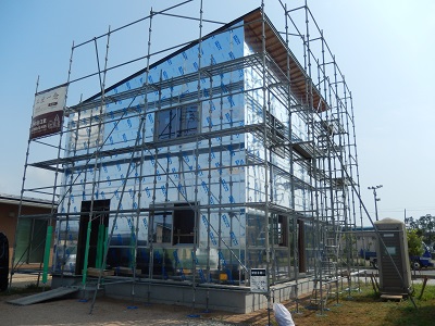 さて、上棟式から一週間たちましたが、現在外貼り断熱を貼っているところです