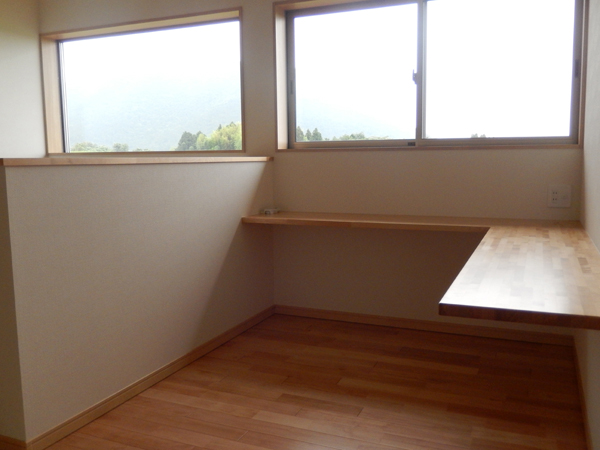 2階に上がったところにはPCカウンターを作ってもらいました。大きめに作って頂き子供の写真も飾ったりしています。